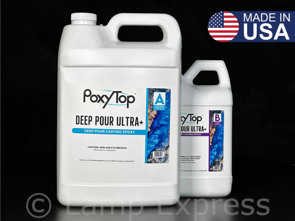 Deep Pour Ultra + is our new flagship deep pour casting epoxy. It is intended and recommended for Large Deep Pour Projects (2"-3" Per Session, no max amount of pour at 2 inches deep, drop temperatures for 3” large pours) and will take much longer to cure on smaller pieces such as jewelry.